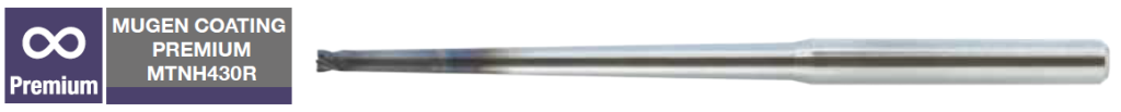 - MTNH430R, untuk End Mills Ujung Radius Leher Lancip 4-alur dengan coating MUGEN PREMIUM