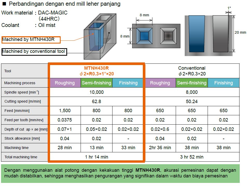 Selain itu, untuk memenuhi permintaan permesinan dengan hasil permukaan seperti cermin (mirror), kami telah mengembangkan rangkaian end mill PCD yang dapat menghasilkan permukaan seperti cermin dengan kerapatan ukuran nanometer dalam proses permesinan, menggunakan berlian/diamond polikristalin sebagai material alat potong (cutting tools).