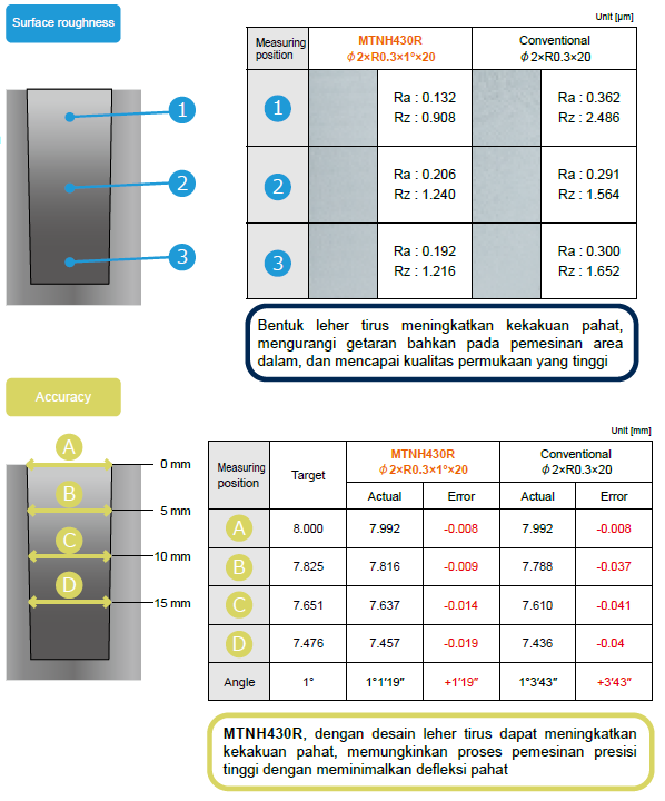 Dengan akurasi sudut R ±2μm dan indikasi diameter luar aktual, pemesinan presisi tinggi dapat dilakukan.