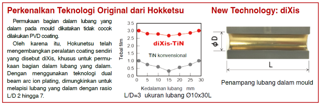 Salah satu kekuatan terbesar kami adalah kemampuan mengembangkan teknologi coating baru. Untuk mencapai performa coating maksimal, diperlukan pengetahuan mendalam tentang heat treatment dan material baja. Hokunetsu mampu memberikan performa terbaik berkat pengalaman lebih dari 45 tahun sejak pendirian perusahaan.