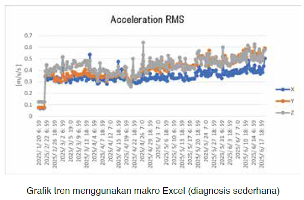 - Dilengkapi contoh makro Excel untuk manajemen tren data getaran