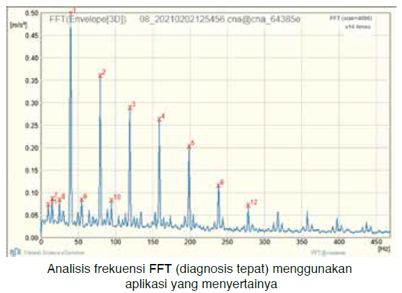 - Memiliki aplikasi analisis frekuensi FFT, memungkinkan deteksi kerusakan bearing dengan teknologi terpatent