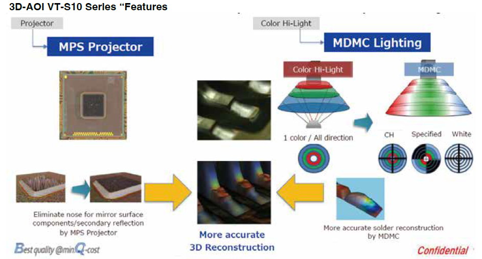 Menghasilkan inspeksi 3D tingkat tinggi dengan memanfaatkan teknologi pencahayaan MDMC eksklusif OMRON yang dikombinasikan dengan proyektor MPS.